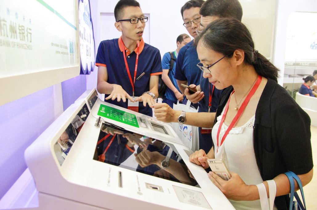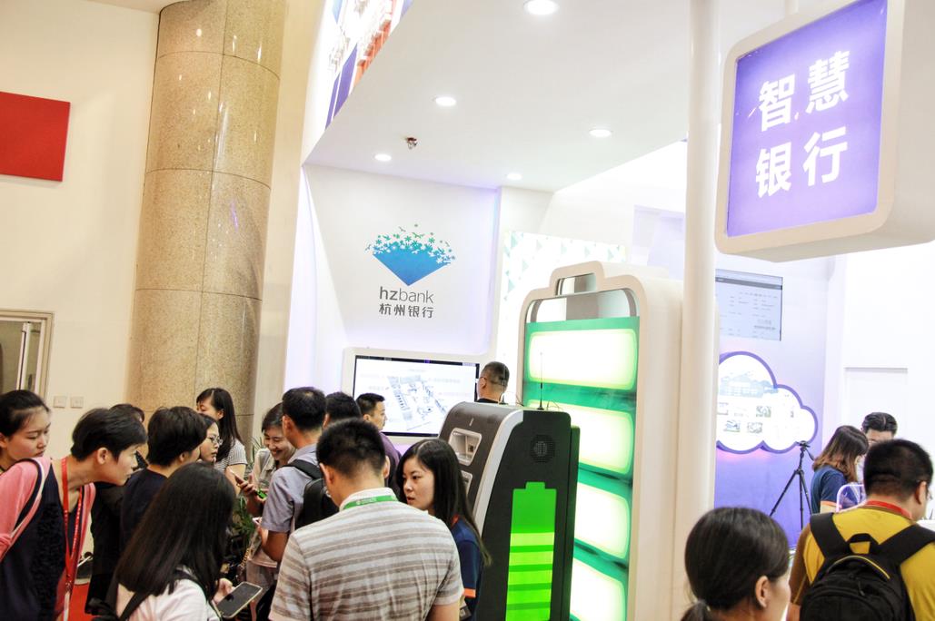 本次展會,證通電子特邀杭州銀行參與展示,并為其設定了專門的智慧銀行設備展示區域,展會過程中,杭州銀行展示區人流不斷,觀眾們紛紛駐足觀看杭州銀行智慧網點的演示視頻,并饒有興趣地向現場工作人員了解設備的優勢特點。