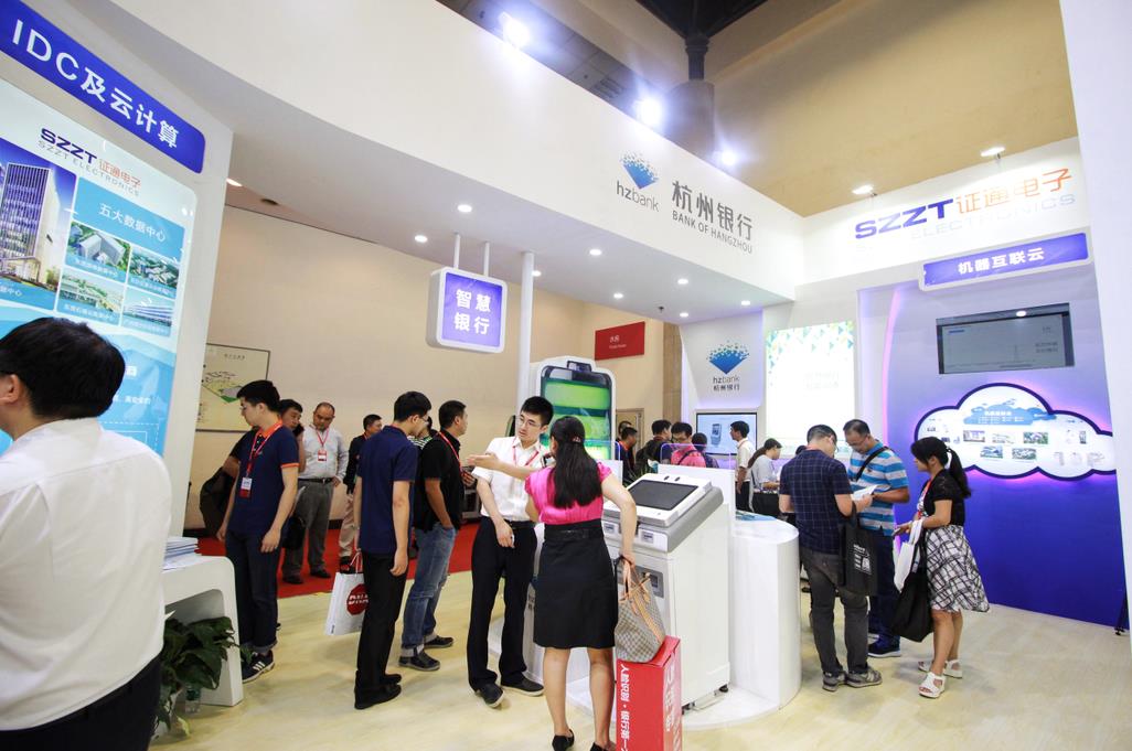 2017年7月27日,亞太地區最具知名度和影響力的年度金融盛會“中國國際金融展”在北京展覽館盛大啟航,展會由中國金融電子化公司主辦,匯集了大批優秀的金融機構參與其中。本次證通電子最具代表性的金融科技核心產品在展會驚艷亮相,并特別邀請到合作伙伴杭州銀行入駐我們的智慧銀行展示區。