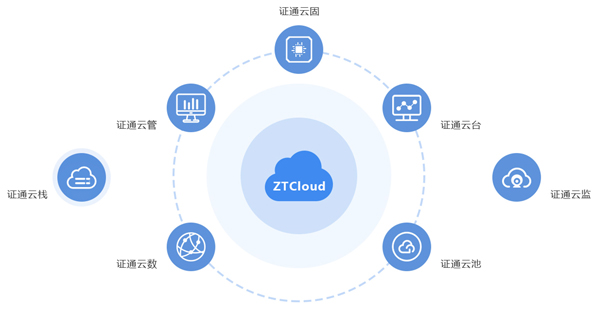 證通云作為云計算基礎設施提供商,立足于證通電子IDC數據中心,提供云主機、云存儲、云安全、云災備等基礎設施服務平臺和行業解決方案。按其功能劃分為七大產品:證通云棧、證通云臺、證通云池、證通云數、證通云固、證通云監、證通云管。
